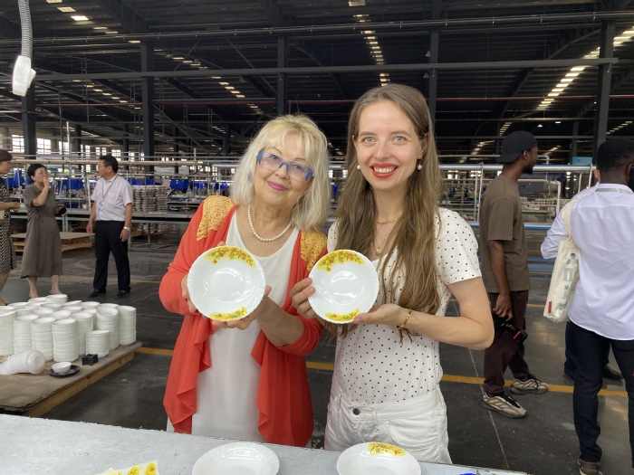 来自马来西亚的李谨全是南京艺术学院的大四学生,他说此前对中国的了解主要是南京以及北上广深这些大城市,这次来到淮安洪泽区的西顺河镇张福河村洪泽湖湿地,收获了意外之喜。美丽的洪泽湖,大片的荷花,外籍友人吃着新鲜采摘的莲蓬,品味用荷花叶制作的点心,感叹一切美不胜收。参观江苏悦丰晶瓷科技有限公司时,李谨全体验了制作餐具的过程,了解到这些带有中国元素的餐具主要供出口,“我在自己国家的超市里也见过类似的餐具,这让我体会到淮安洪泽区欣欣向荣的工业经济”。