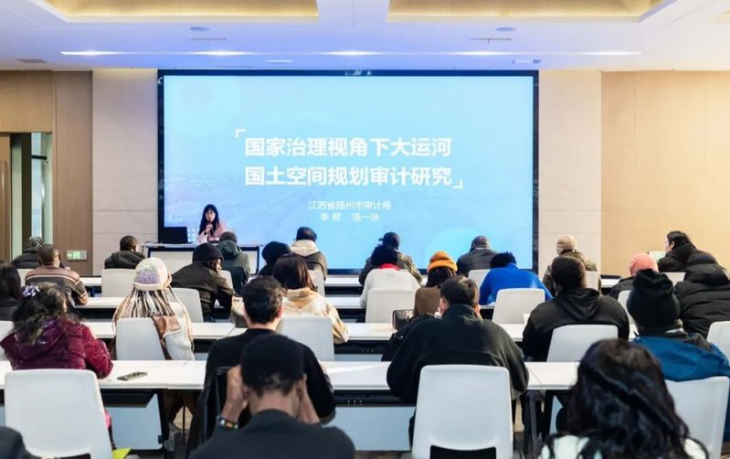 参观博物馆之后,李乾文副校长主持了由扬州市审计局主办的审计研究分享会,主题为“国家治理视角下大运河国土空间规划审计研究”。在分享会中,李乾文与扬州市审计局的专家和留学生们进行了深入的学术交流,讨论了大运河的历史保护、空间规划及其对国家治理体系和审计制度的影响。留学生们通过此次讨论,进一步了解了中国的审计体系及其在大运河保护与规划中的作用,激发了他们对中国国家治理和审计工作的思考。