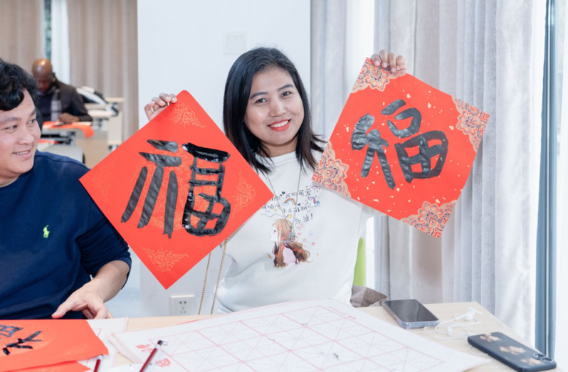 他们表示,在春节到来的时候,要像中国人一样,把亲自写的“福”字贴在门上,感受中国年的氛围。