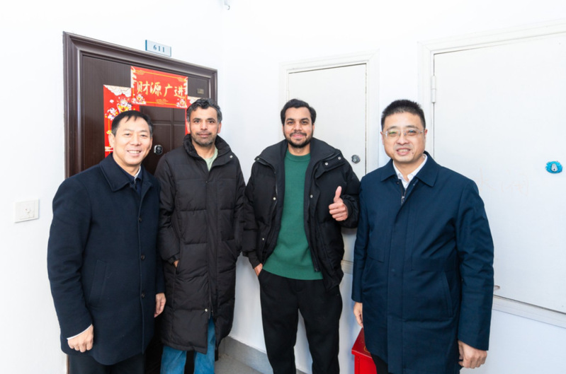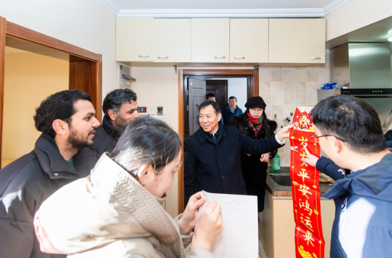 在装扮节日氛围的同时,校党委书记董必荣和副校长李乾文还一起检查了留学生宿舍的消防安全设施,叮嘱留学生假期在校一定要绷紧安全之弦,防范消防事故,确保人身安全。随后,校领导向留学生发放了消防面罩,希望留学生们度过一个欢乐、祥和、安全的中国农历新年。