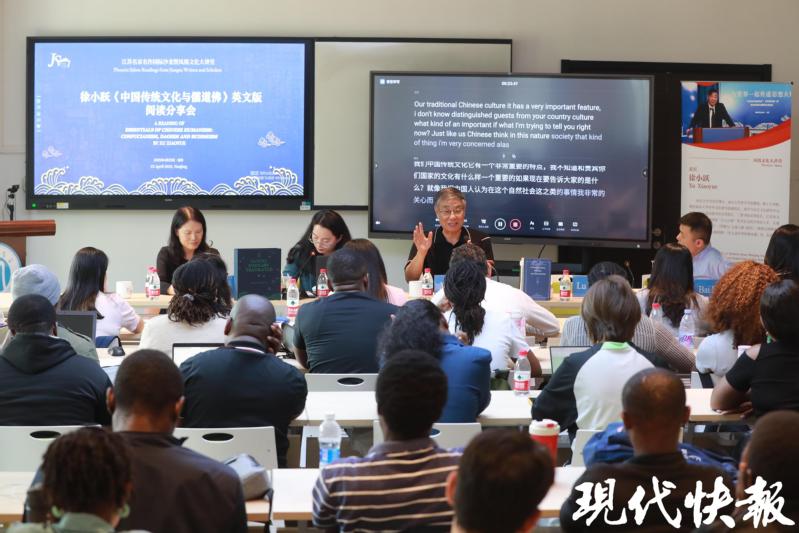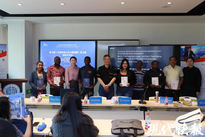 整场分享会反响热烈,活动结束后,留学生们纷纷拿着英文版《中国传统文化与儒道佛》请徐小跃签名、合影留念。通讯员 白立业 现代快报/现代+记者 姜斯佳/文 马晶晶 顾闻/摄)
