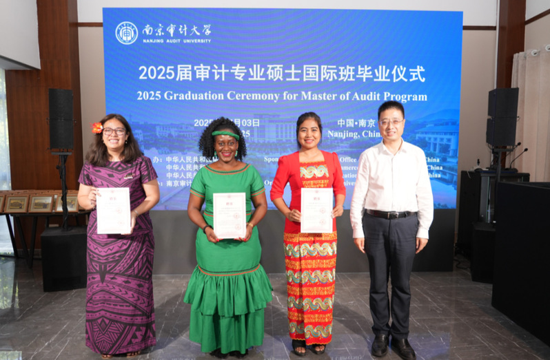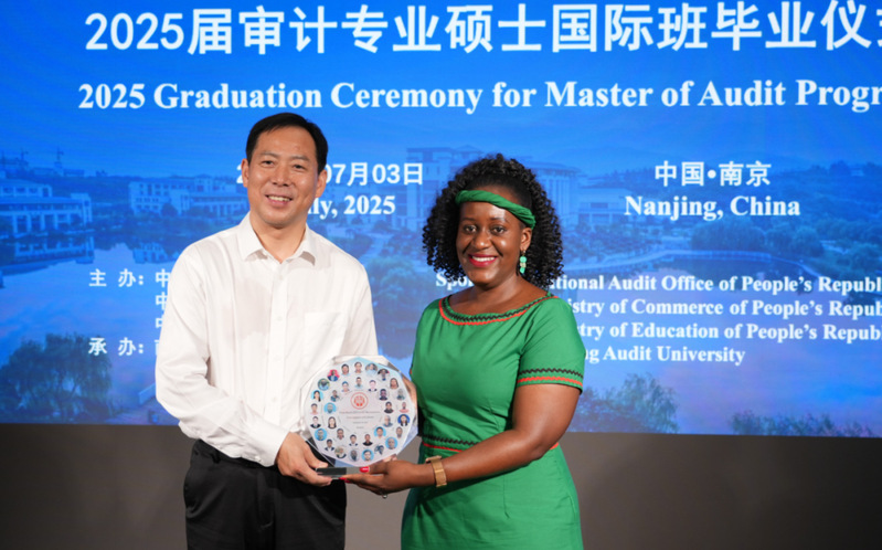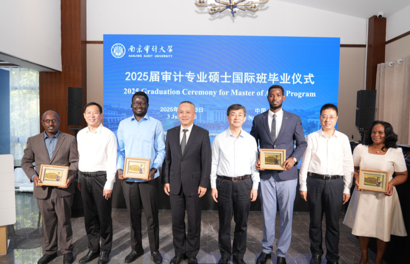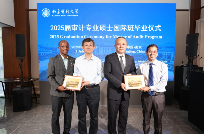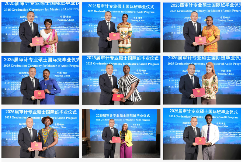 2025年7月3日下午,南京审计大学在留学生院多功能厅隆重举行毕业仪式,欢送2025届审计专业硕士国际班留学生。国家留学基金管理委员会党委书记、秘书长生建学,商务部国际商务官员研修学院副院长徐凯,南京审计大学党委书记董必荣,党委副书记、校长陆华良,党委常委、副校长李乾文等领导出席仪式,与33名来自全球23个国家的毕业生共同见证这一重要时刻。仪式由陆华良校长主持。