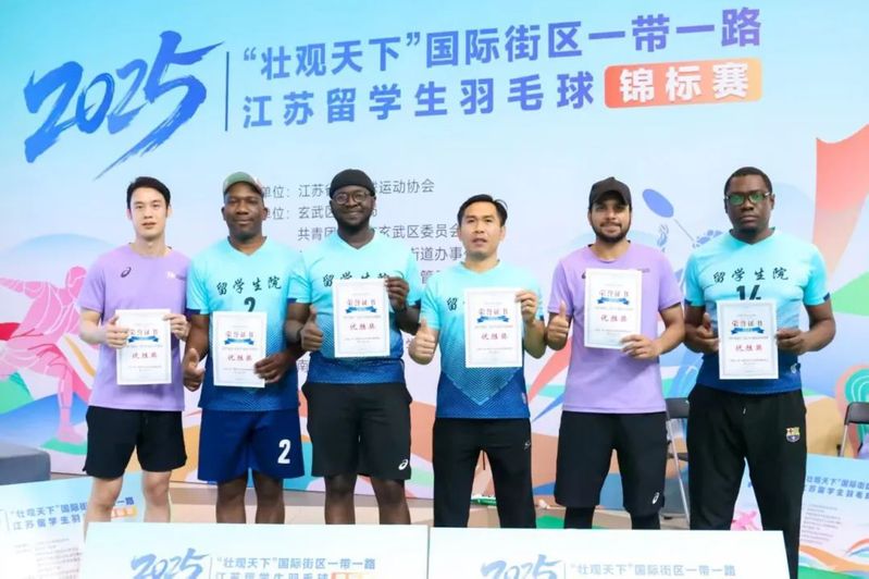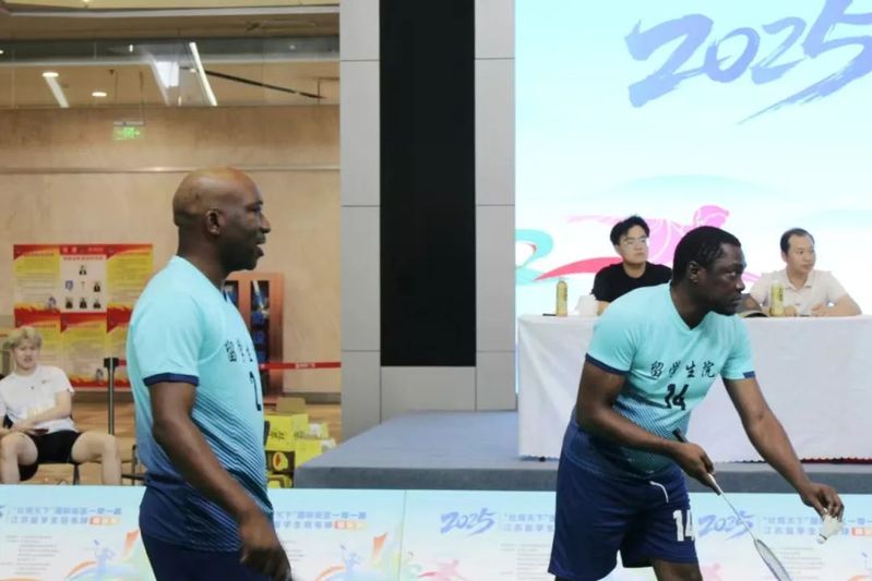 2025年6月15日,由江苏省羽毛球运动协会指导的“2025‘一带一路’江苏留学生羽毛球锦标赛”在南京常发广场举行。本次赛事汇聚了来自南京大学、东南大学、南京师范大学等多所省内高校的留学生羽毛球爱好者。我校留学生院选派了来自老挝、巴基斯坦、尼日尼亚、喀麦隆、马拉维的6名留学生代表参加此次比赛。