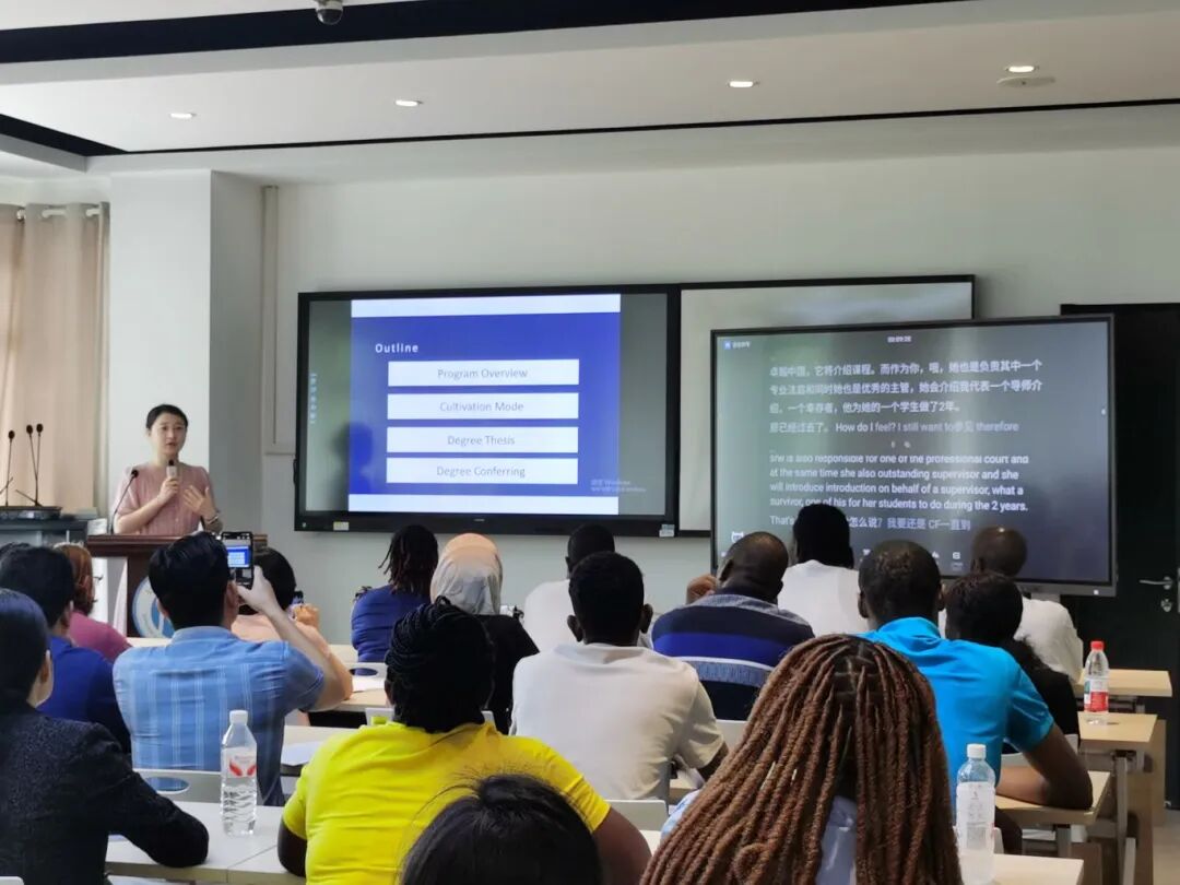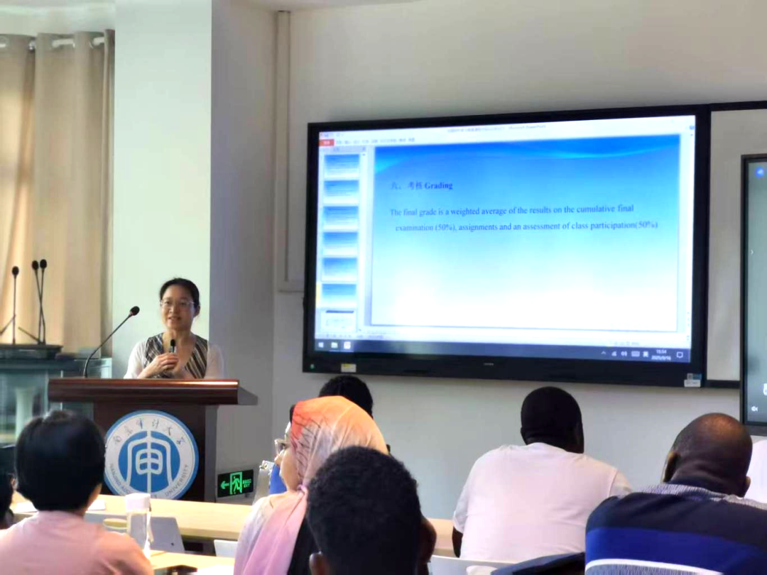 刘洪洁老师首先向留学生介绍了在两年的培养周期内的一些重要节点,以及如何顺利地在规定时间内完成学习任务,顺利获得毕业资格。紧接着她又从专业角度深入解读了"中国特色社会主义审计制度"课程。她详细呈现了教学内容安排、课时安排和作业要求。