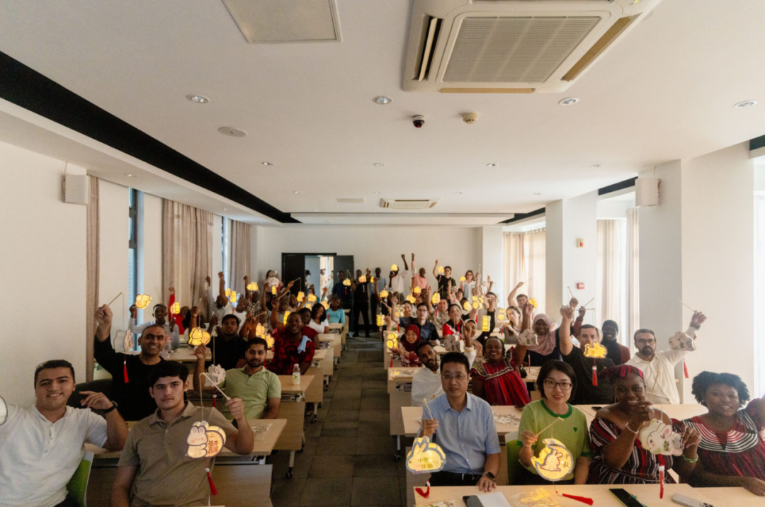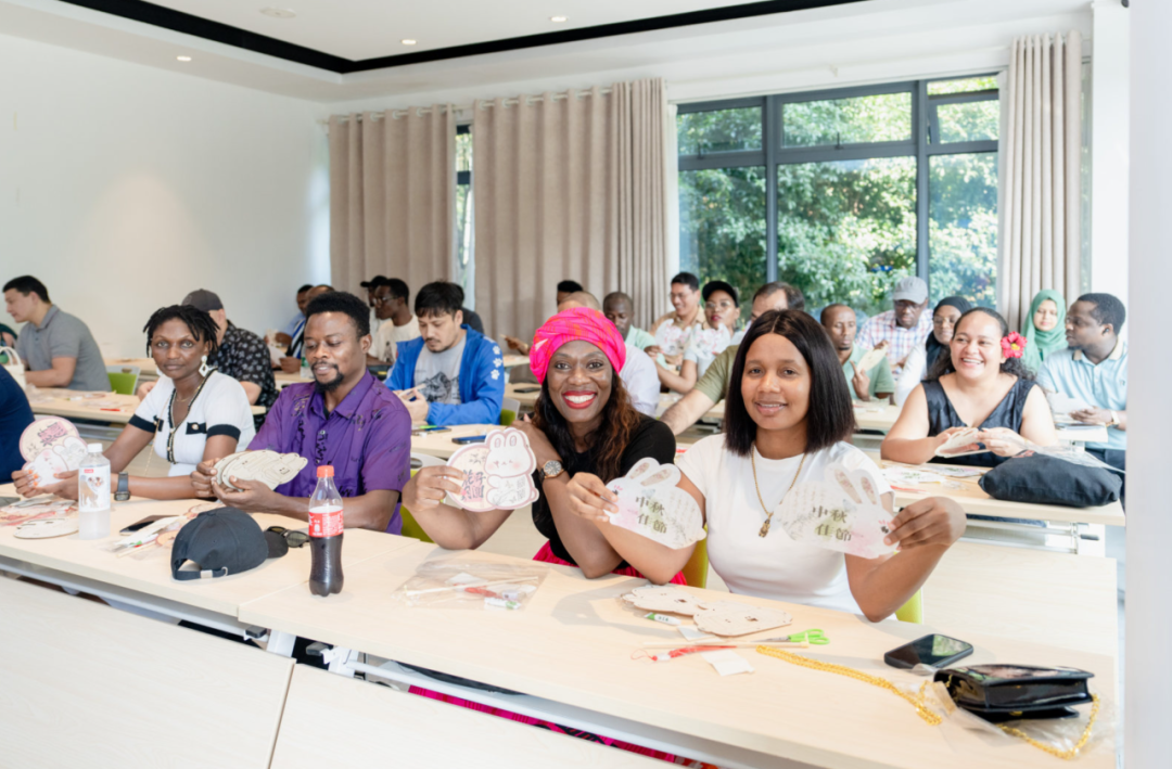 为了让留学生沉浸式体验中秋氛围,留学生院特意安排了DIY玉兔灯制作活动。玉兔是中秋节的重要意象之一,与圆月、嫦娥、桂花树等文化符号一起营造出中秋的氛围。留学生们在老师的指导下,互帮互助,精心制作,一个个姿态各异、小巧玲珑的兔子灯展现在眼前。大家一起点亮玉兔灯,寄托着对故乡与亲人的思念,也收获了团结互助的友谊。此时,这一盏盏灯,不仅成为了中华传统文化的灵动载体,更是连接彼此的温暖桥梁。
