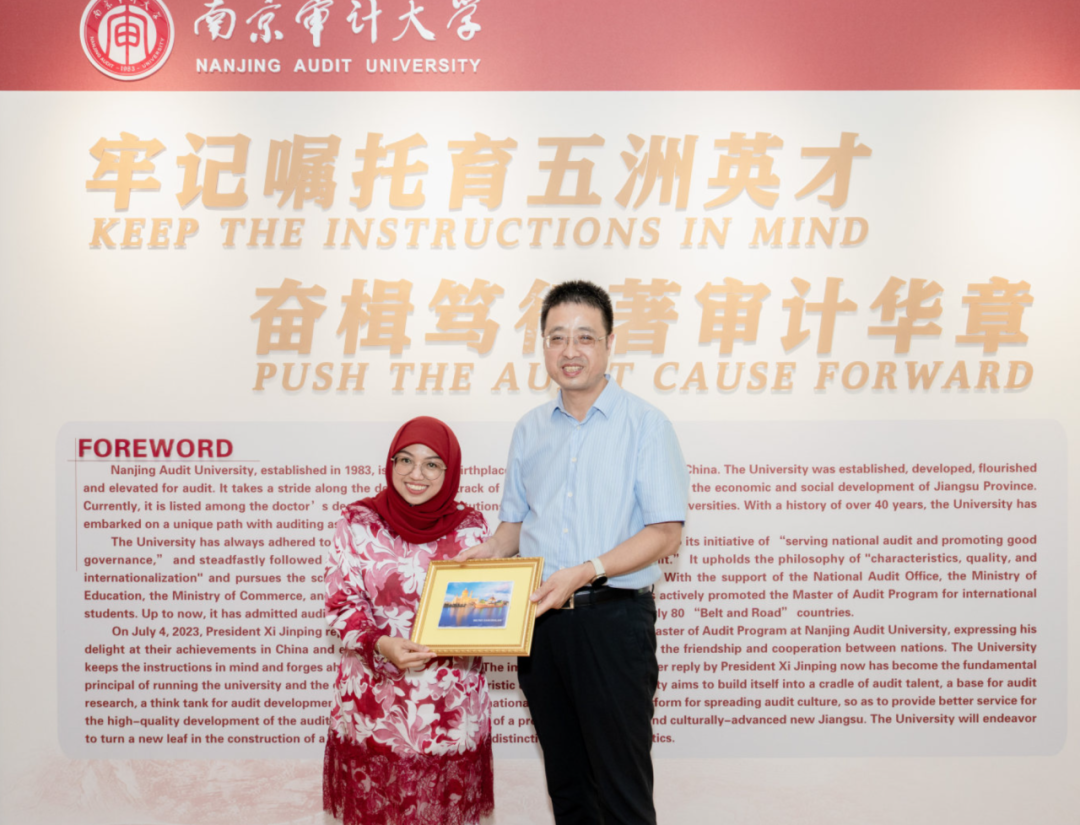 李乾文向留学生介绍了中秋节的特殊含义和传统习俗。他强调,在这样一个特殊的日子,来自39个国家的留学生如同家人一般齐聚一堂,本身就是要让留学生把南审当作自己的家。他希望留学生充分利用两年的时间深入了解中国,不仅学习审计知识,同时要收获温暖和情谊,成为传播友谊的使者。