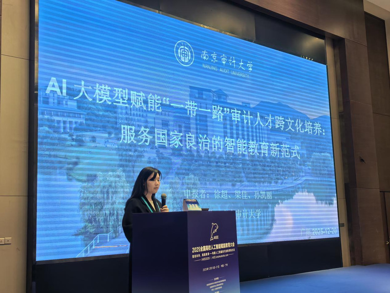 12月20日,2025全国高校人工智能赋能教育大会在广州召开。依托我校审计智能化AI大模型服务平台申报而成的教学案例“AI大模型赋能‘一带一路’审计人才跨文化培养:服务国家良治的智能教育新范式”获得特等奖。