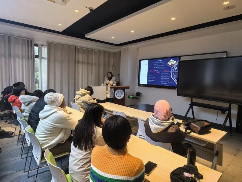 留学生院的教室里其乐融融,寒假留校的留学生们齐聚一堂,谢艺老师正在给留学生们上一堂《理解中国》课。通过图文并茂的PPT,她向留学生们讲解了腊八节的起源、历史传说和相关民俗,包括分发腊八粥、腌制腊八蒜、制作腊八豆腐、祭祖祈福等。