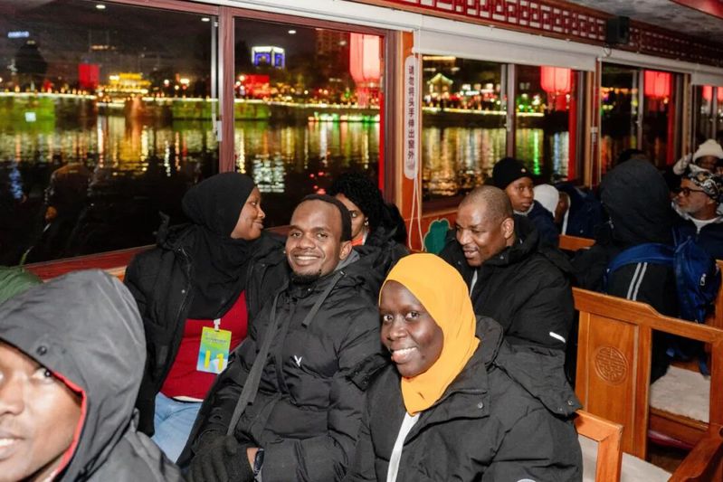 “太美了!”“非常漂亮!”留学生们前往闸口游船码头,开启了浪漫的里运河夜游之旅。两岸璀璨的灯火、古色古香的建筑,与流淌的运河水交相辉映,复刻着千年盐都的繁华余韵。留学生们纷纷拿出手机,定格下这动人的如诗如画的瞬间。在轻拂的晚风中,留学生真切感受运河与盐业共同塑造的城镇肌理,体会“南船北马,舍舟登陆”的千年变迁。大运河仿佛一部流淌的史诗,它贯通南北,是华夏大地流淌的文脉。留学生感受着这条由人力开凿的生命线上文明的生生不息,在这活态长卷中读懂中国历史与智慧。