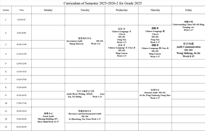 2025-2026-2 2025级留学生课表